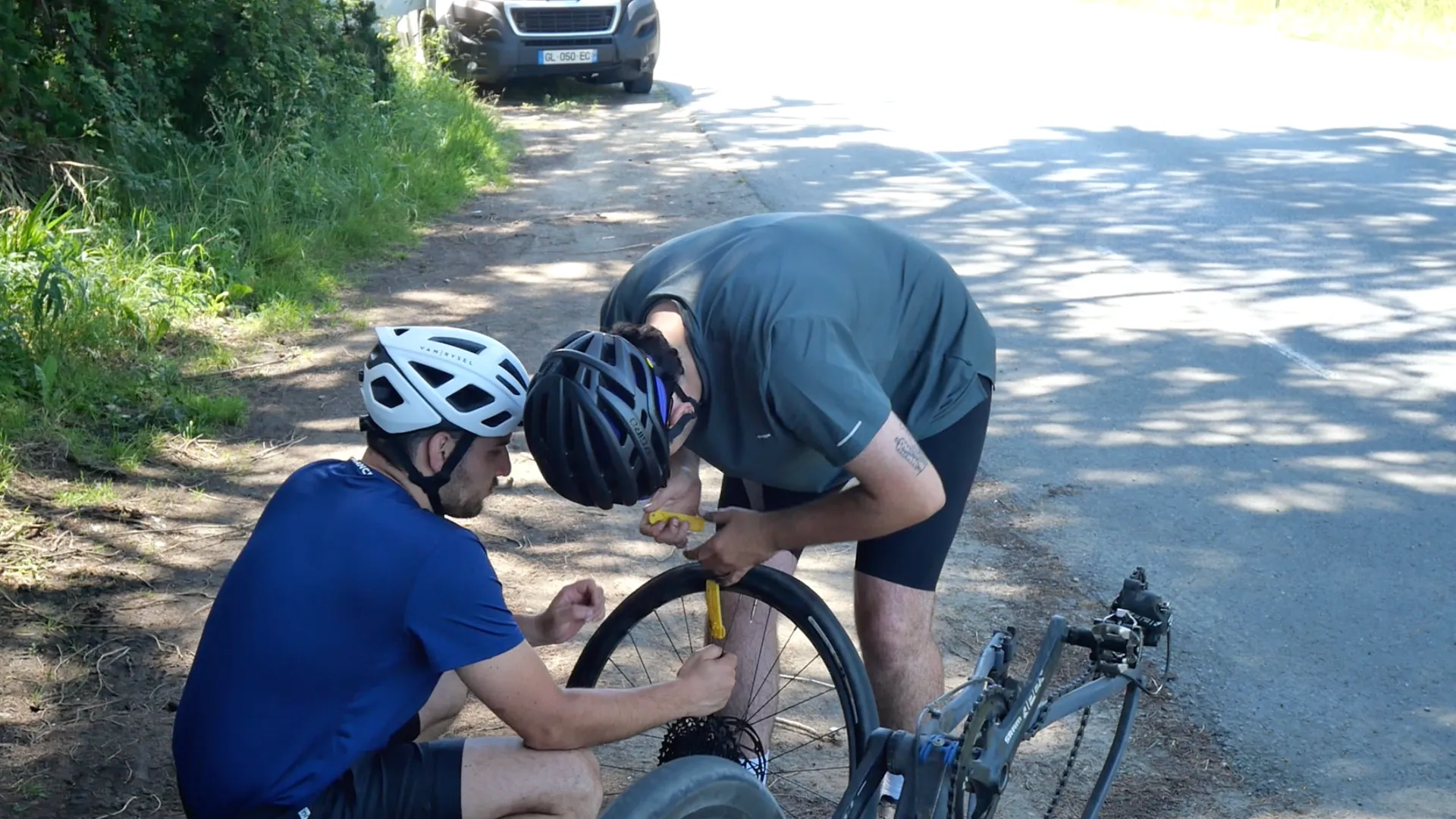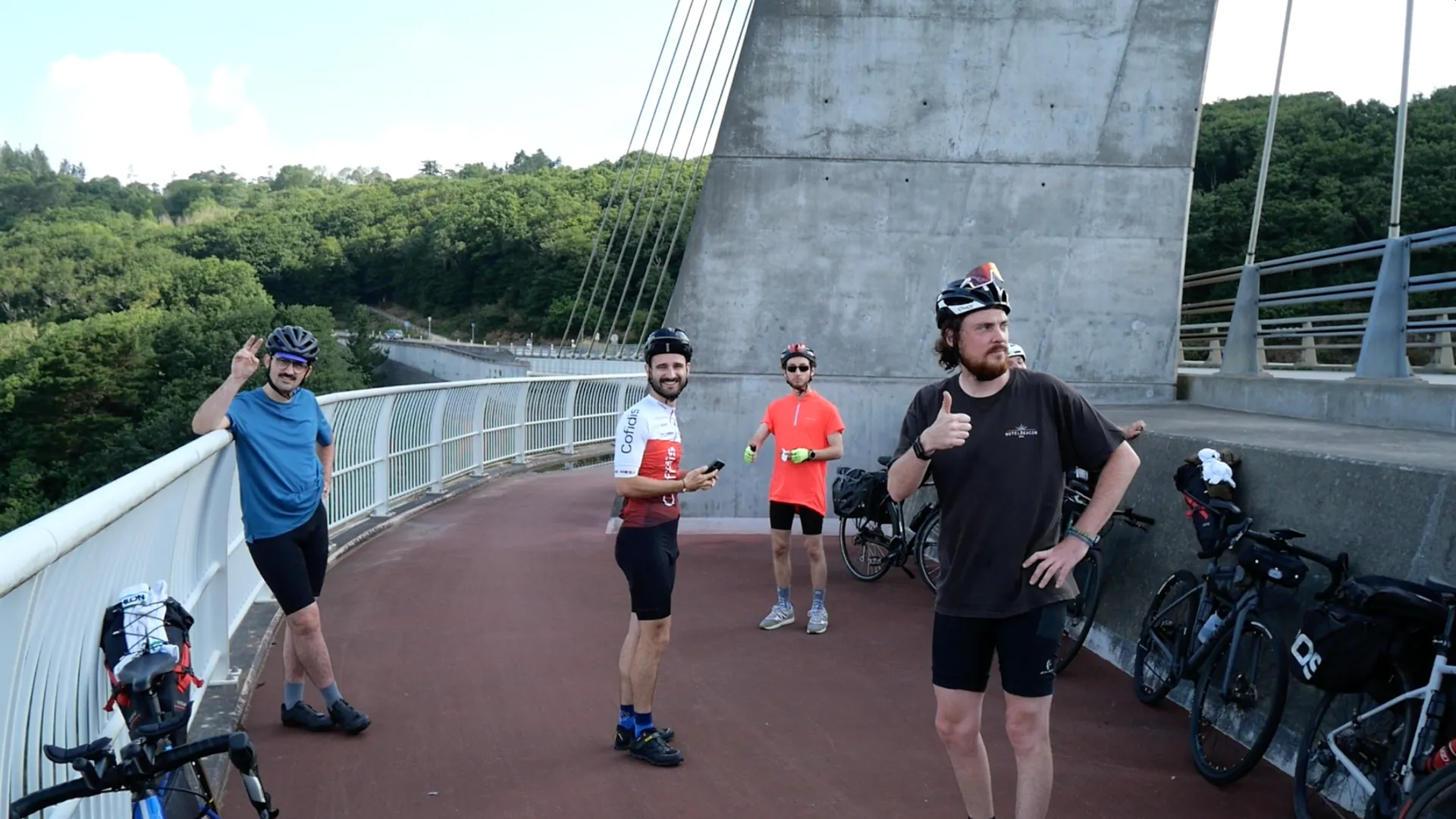 La suite de la journée est une vraie promenade. On roule passant par Plouhinec, puis on franchit la rivière d’Étel. Après ça, le paysage change doucement : passages forestiers autour de Ploemel, avec des routes ombragées, mais malgré ça une chaleur qui commence à bien se faire sentir.