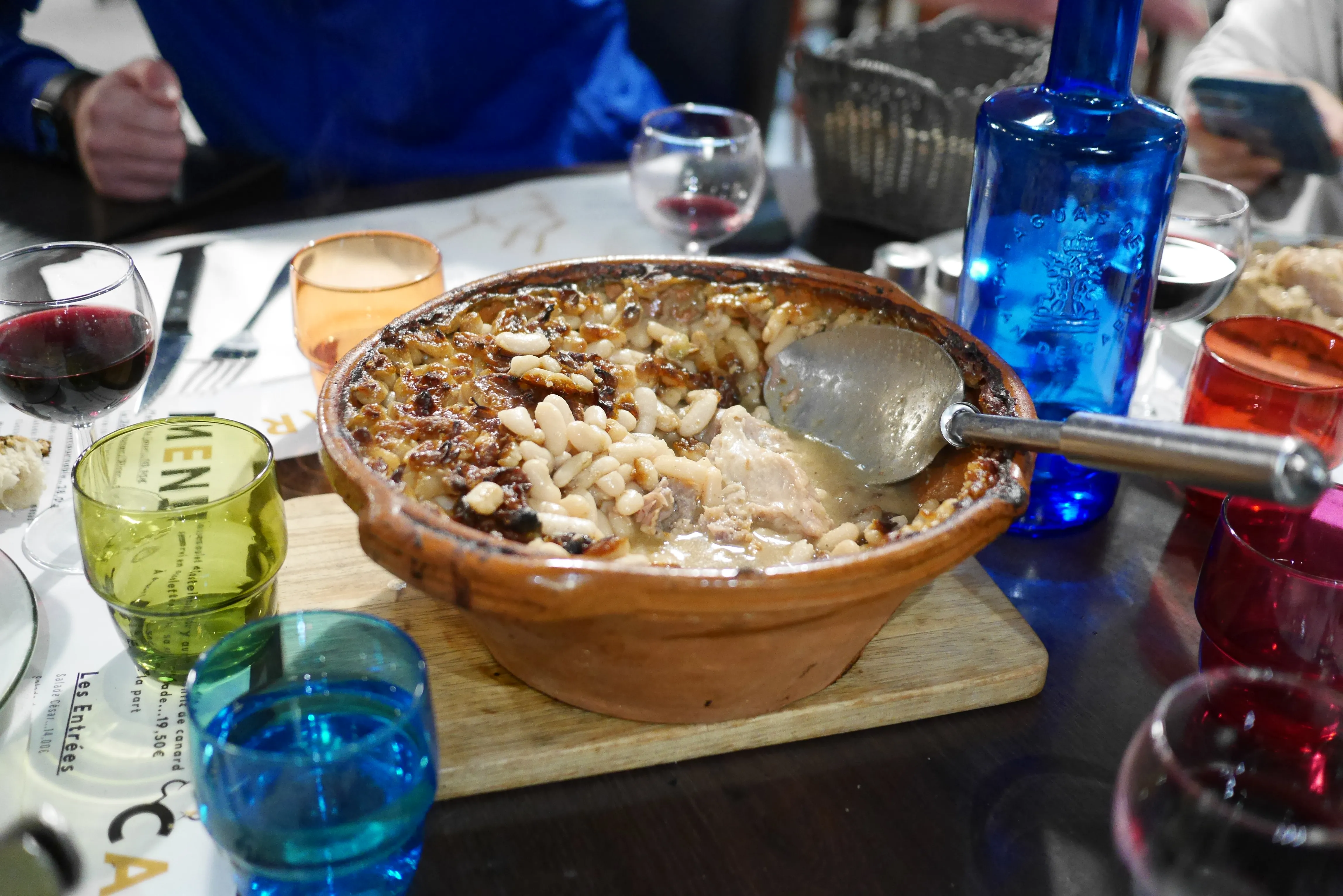 Arrivée à Castelnaudary en fin d’après-midi. Notre point de chute, situé dans une zone commerciale en bord de grands axes, n’est clairement pas là pour le charme. Mais ce n’est pas ce qu’on est venus chercher. Direction Chez Marty, juste en face, pour un premier cassoulet absolument fabuleux, et très copieux. Le serveur nous prévient dès le départ qu'il va falloir finir, sinon c'est le déshonneur. À l’époque, l’adresse n’a pas encore décroché son titre de “meilleur cassoulet du monde”, qui viendra en 2024, mais à la première bouchée, on sent déjà que quelque chose de sérieux se joue dans l’assiette.